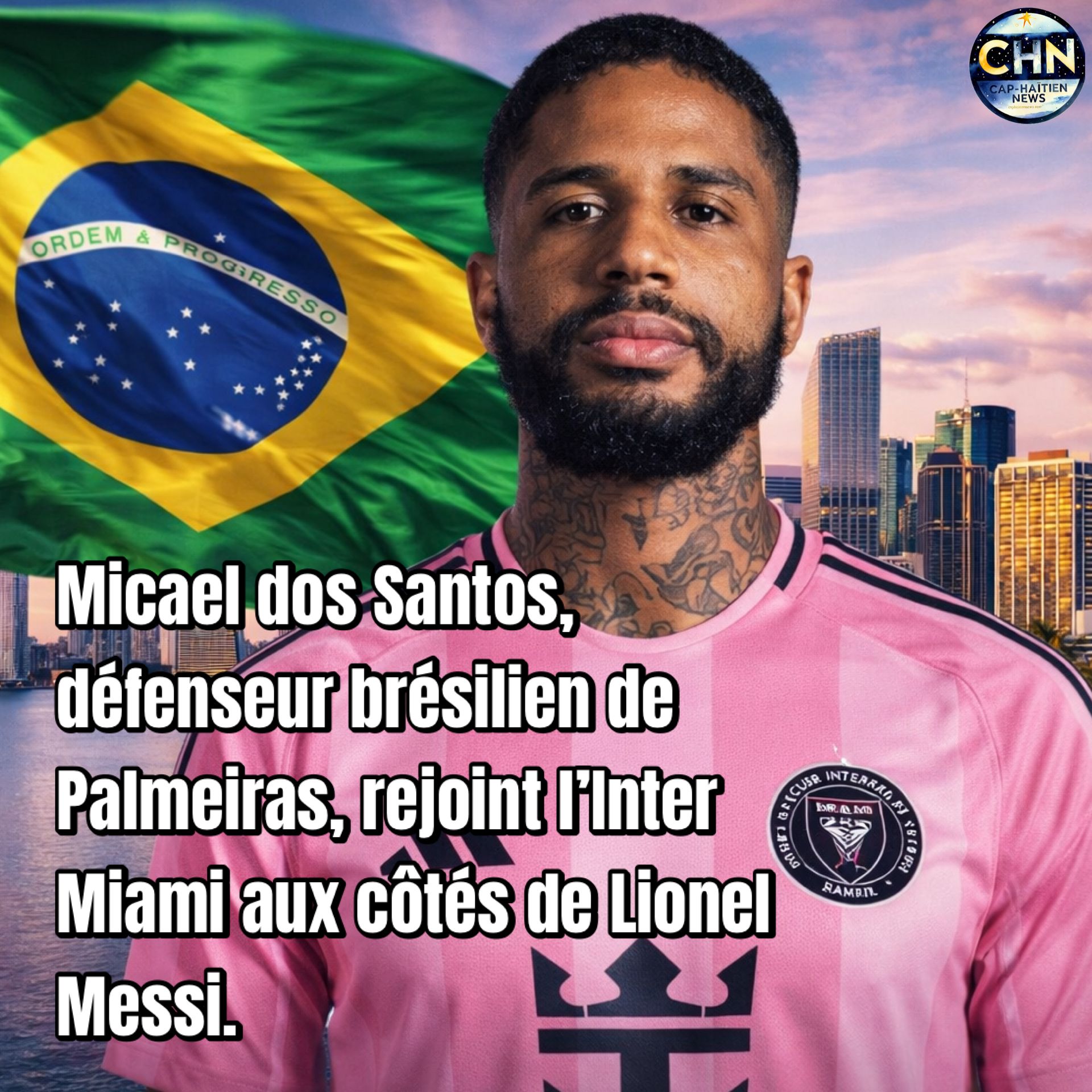 Inter Miami CF a officialisé l’arrivée du 𝘥𝘦́𝘧𝘦𝘯𝘴𝘦𝘶𝘳 𝘤𝘦𝘯𝘵𝘳𝘢𝘭 𝘣𝘳𝘦́𝘴𝘪𝘭𝘪𝘦𝘯 Micael dos Santos sous la forme d’un 𝘱𝘳𝘦̂𝘵 en provenance de SE Palmeiras, avec 𝘰𝘱𝘵𝘪𝘰𝘯 𝘥’𝘢𝘤𝘩𝘢𝘵 jusqu’à la fin de la 𝘴𝘢𝘪𝘴𝘰𝘯 𝘔𝘓𝘚 2026. Âgé de 25 𝘢𝘯𝘴 et 𝘨𝘢𝘶𝘤𝘩𝘦𝘳, le natif de 𝘚𝘢̃𝘰 𝘗𝘢𝘶𝘭𝘰 arrive avec un 𝘴𝘰𝘭𝘪𝘥𝘦 𝘷𝘦́𝘤𝘶 𝘪𝘯𝘵𝘦𝘳𝘯𝘢𝘵𝘪𝘰𝘯𝘢𝘭, après avoir remporté plusieurs titres avec Atlético Mineiro, puis s’être imposé en 𝘔𝘓𝘚 avec Houston Dynamo FC, où il a notamment gagné la 𝘓𝘢𝘮𝘢𝘳 𝘏𝘶𝘯𝘵 𝘜.𝘚. 𝘖𝘱𝘦𝘯 𝘊𝘶𝘱 et été élu 𝘋𝘦́𝘧𝘦𝘯𝘴𝘦𝘶𝘳 𝘥𝘦 𝘭’𝘢𝘯𝘯𝘦́𝘦. Passé par 𝘗𝘢𝘭𝘮𝘦𝘪𝘳𝘢𝘴 en 2025, Micael vient 𝘳𝘦𝘯𝘧𝘰𝘳𝘤𝘦𝘳 𝘭𝘢 𝘭𝘪𝘨𝘯𝘦 𝘥𝘦́𝘧𝘦𝘯𝘴𝘪𝘷𝘦 floridienne grâce à son 𝘦𝘹𝘱𝘦́𝘳𝘪𝘦𝘯𝘤𝘦, sa 𝘳𝘦𝘭𝘢𝘯𝘤𝘦 𝘱𝘳𝘰𝘱𝘳𝘦 et sa 𝘭𝘦𝘤𝘵𝘶𝘳𝘦 𝘥𝘶 𝘫𝘦𝘶, dans un 𝘤𝘰𝘯𝘵𝘦𝘹𝘵𝘦 𝘢𝘮𝘣𝘪𝘵𝘪𝘦𝘶𝘹 à l’approche de la saison 2026.